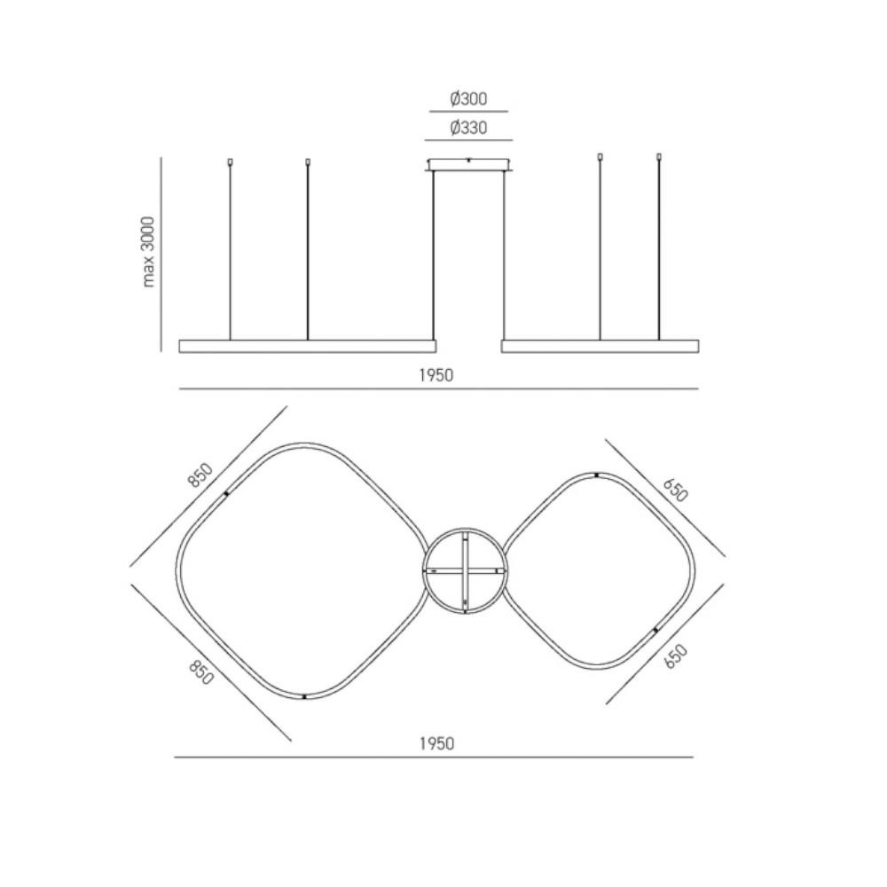 Criseide gea luce lampadario led doppio diffusore bienco 3000k quadrati