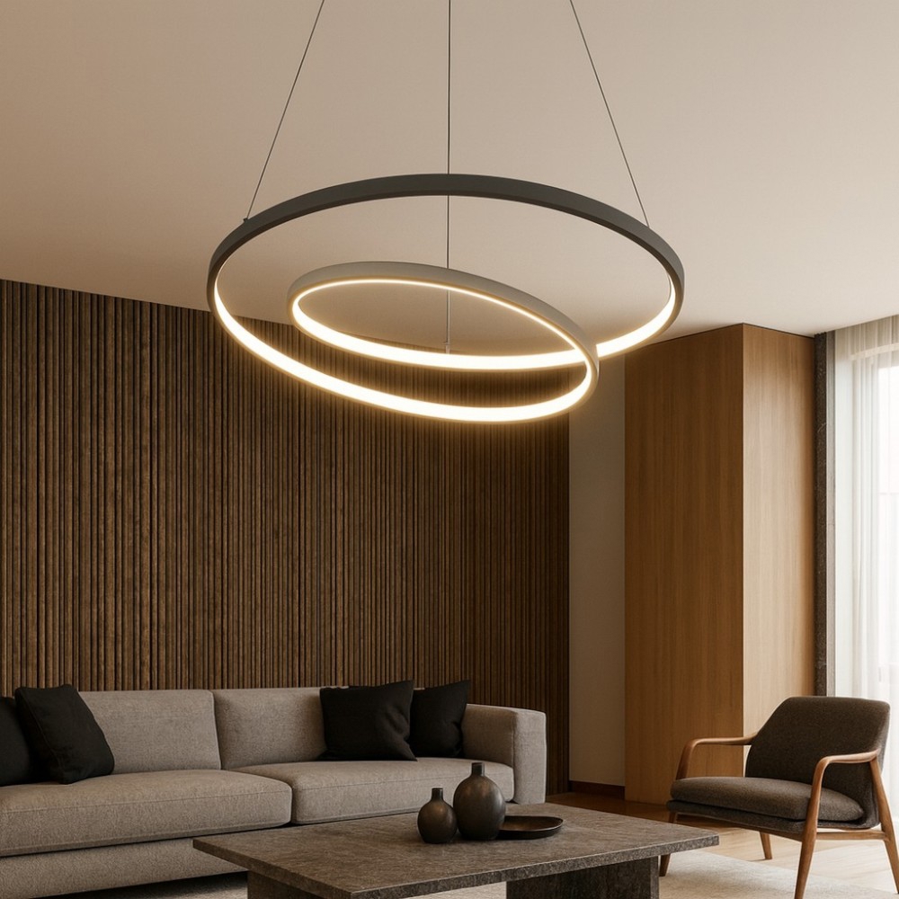 Lampadario moderno nero per soggiorno led dimmerabile 60w 3000k