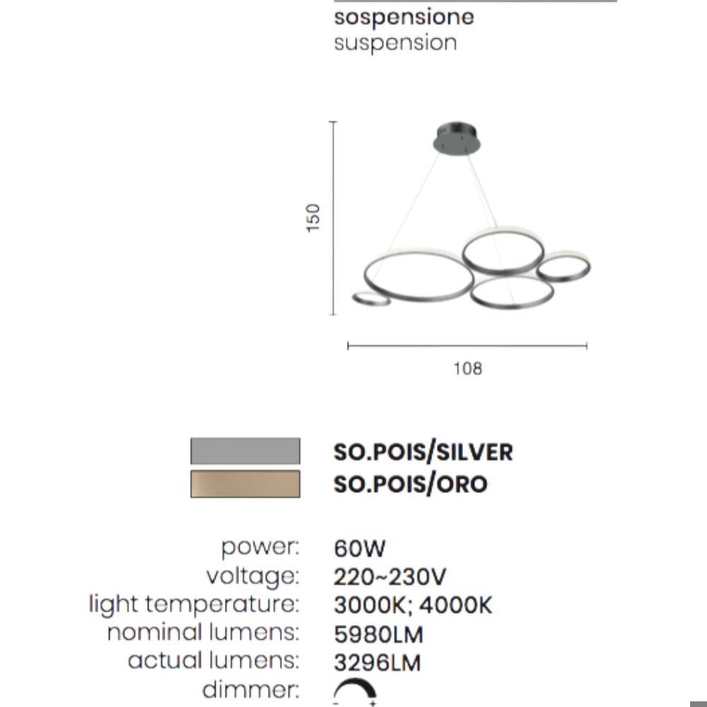 Lampadario design moderno so pois ondaluce oro led 60w 4000k