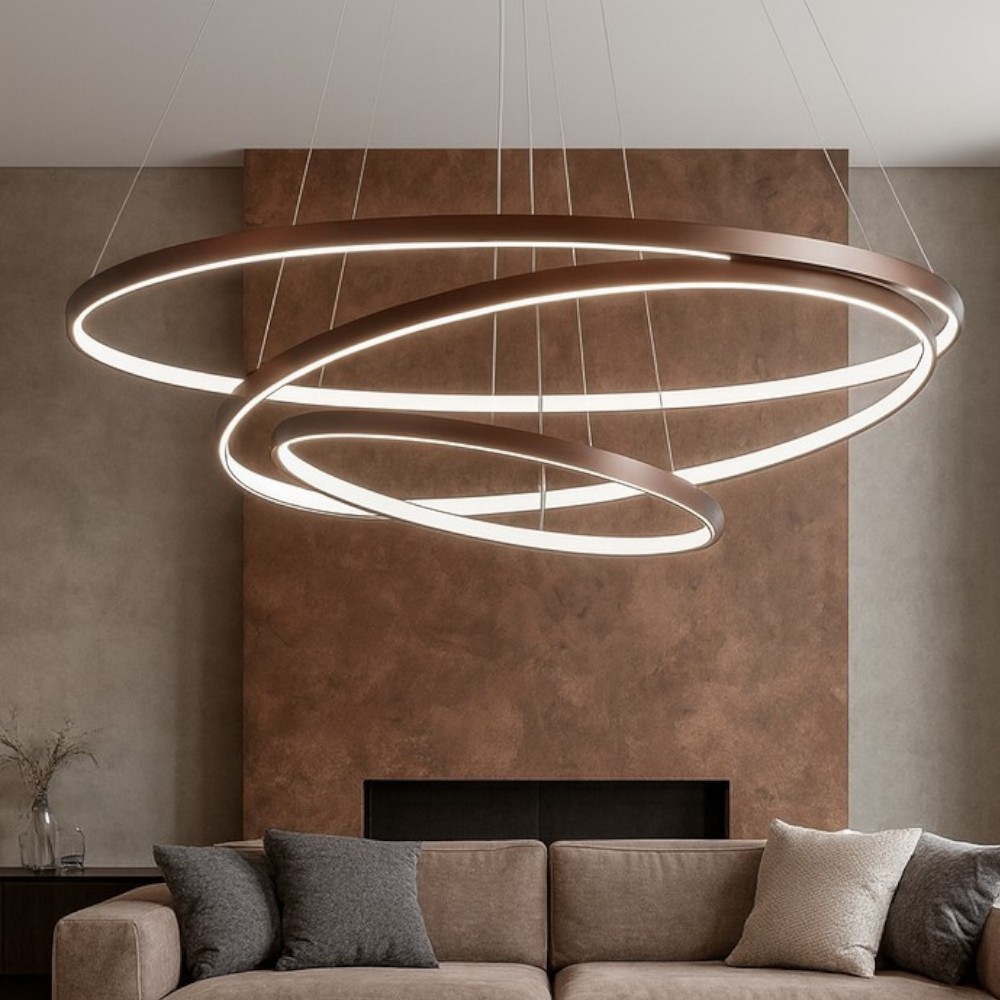 Lampadario moderno cerchi led 3000k marrone per soggiorno
