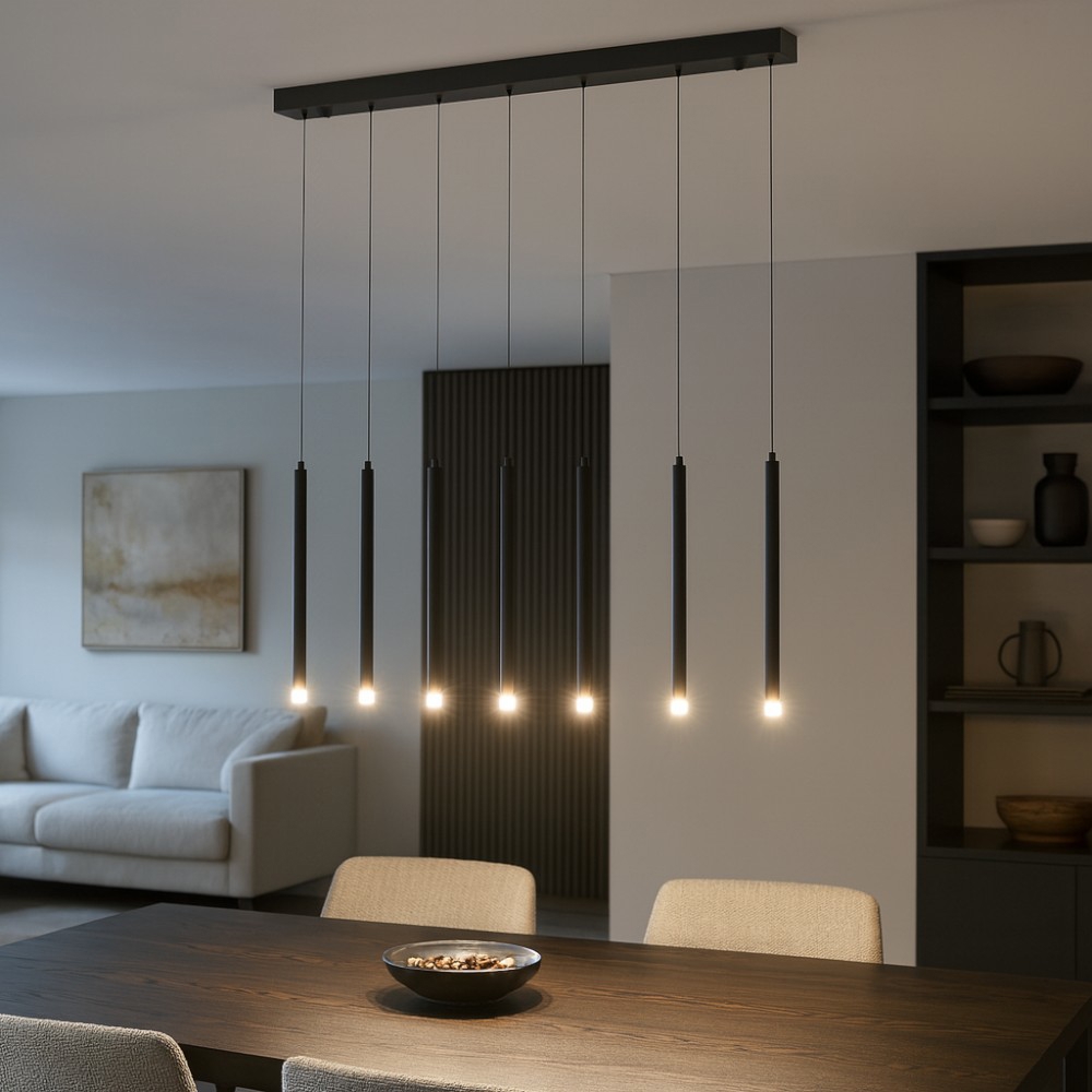 Lampadario moderno 4 luci nere per tavolo da soggiorno
