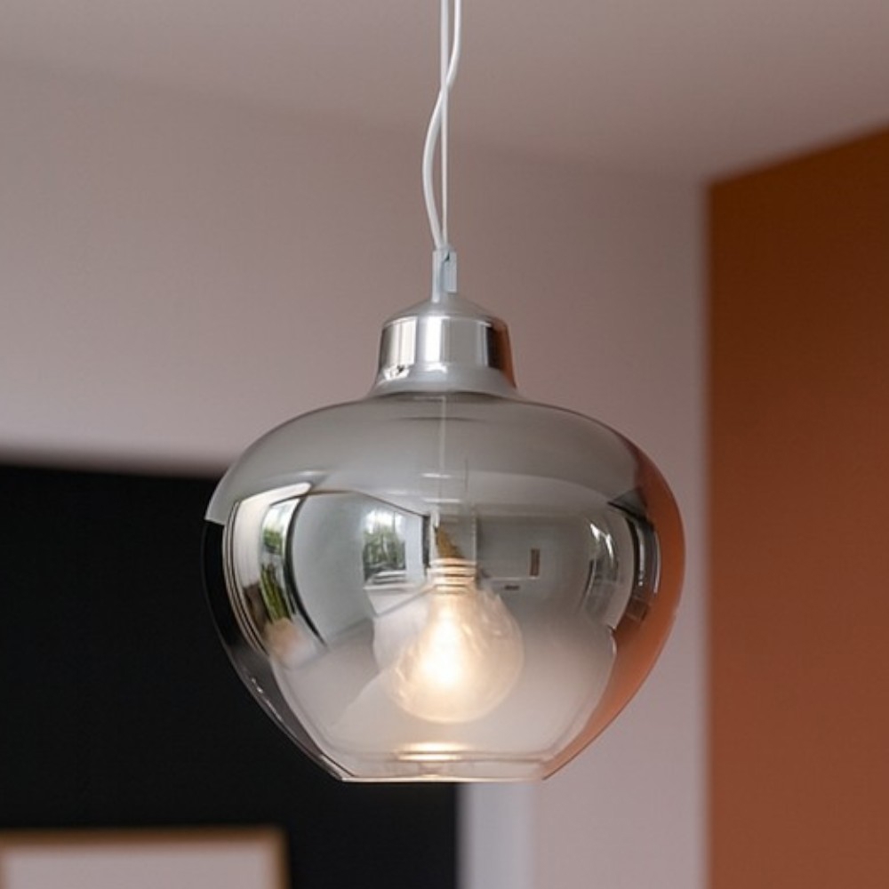 Lampada a sospensione sfera di vetro ambra bowl perenz illuminazione