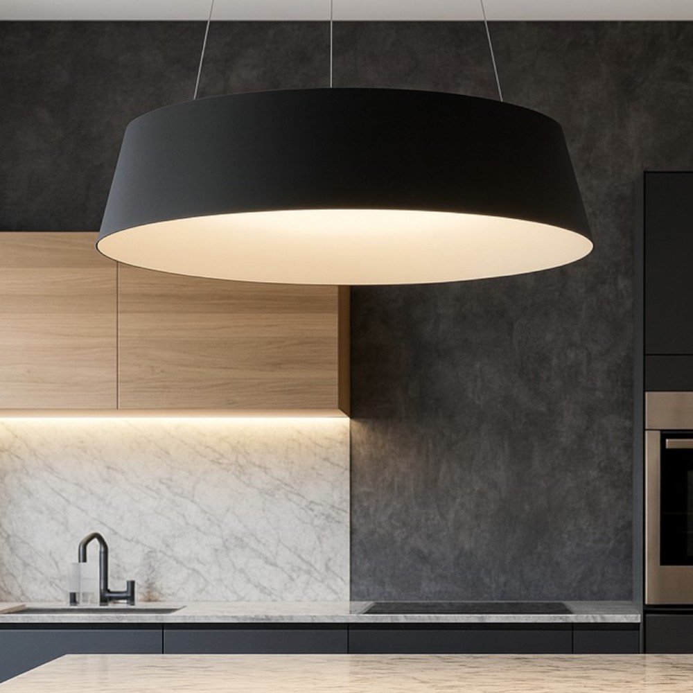 Lampadario led dimmerabile cono rovesciato nero oro per cucina moderna