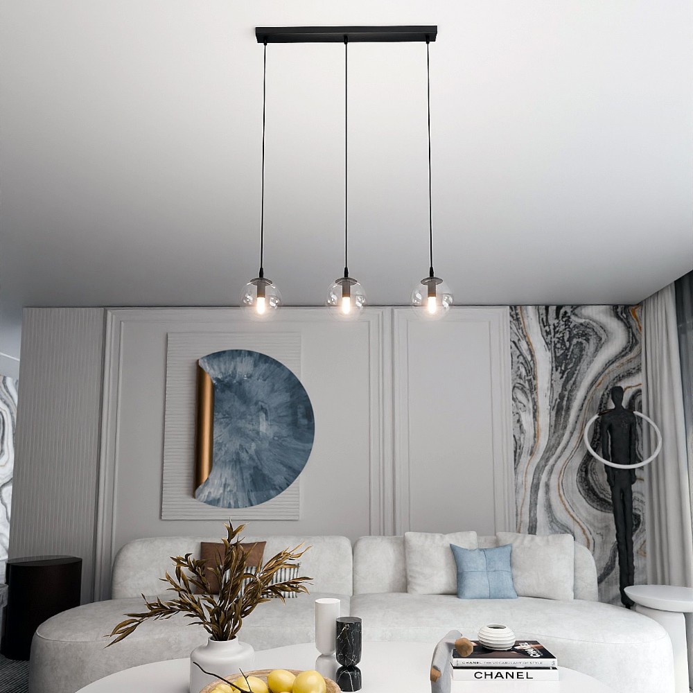 Lampadario sfere vetro trasparenti per soggiorno moderno fp