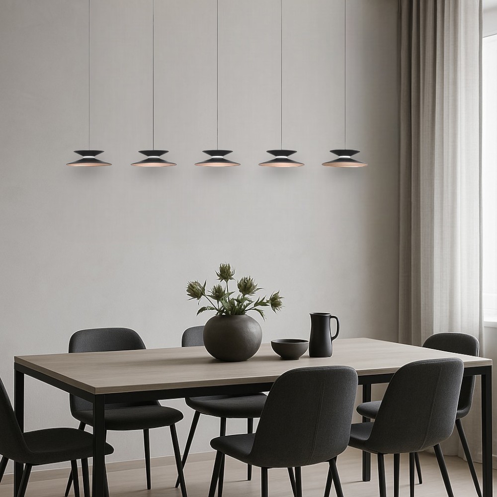 Lampadario design con pendenti nero oro per da pranzo moderna