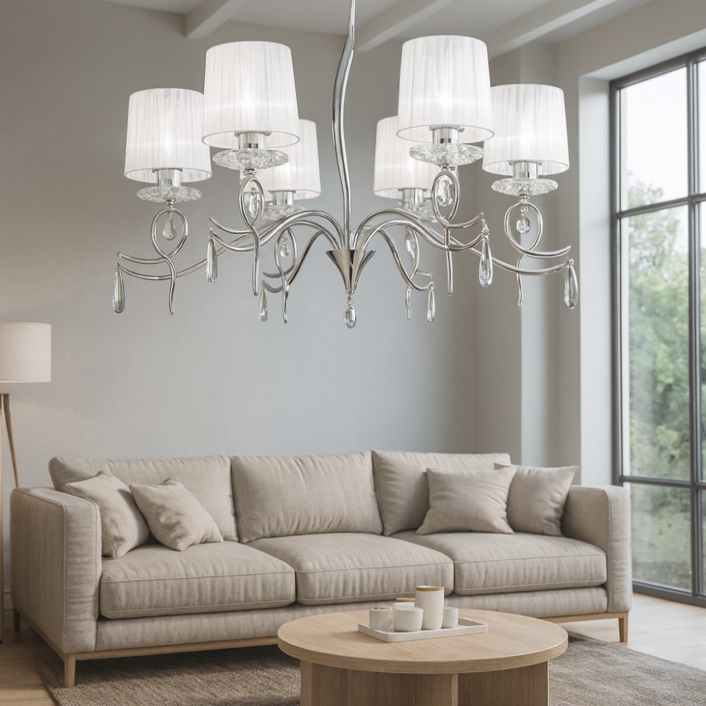 Madame sp1 lampadario cappello in tessuto raso bianco ideal lux