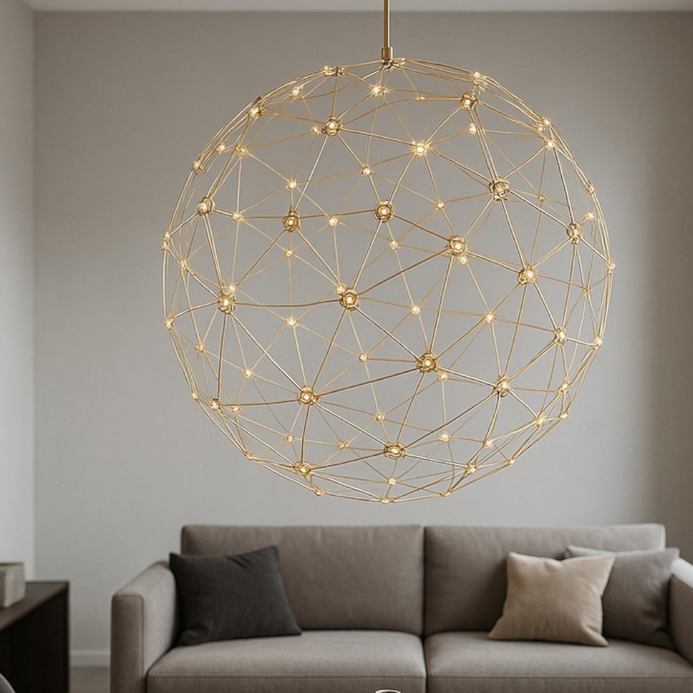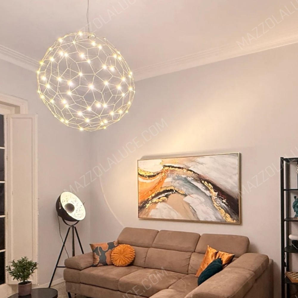 Lampadario sfera sole 80 cm oro led 21w 3000k moderno