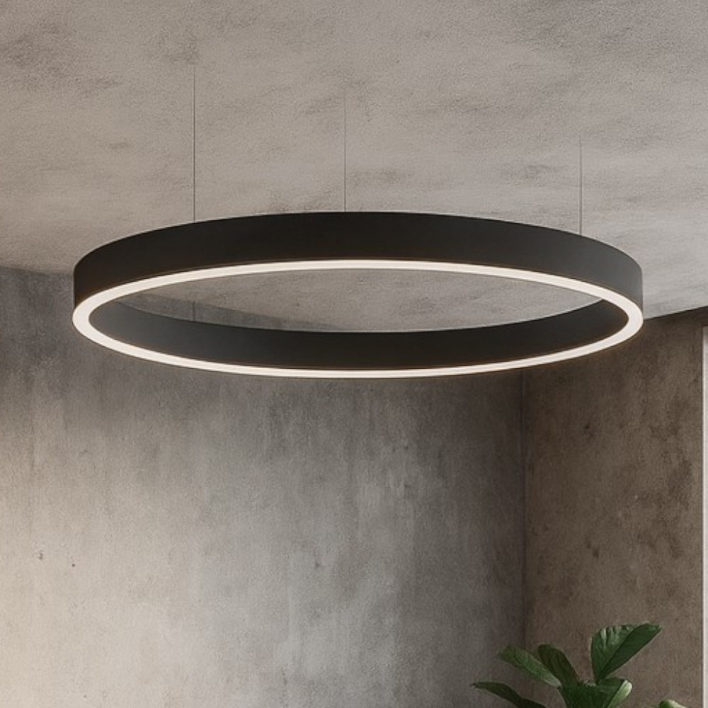 Lampadario anello nero 120cm led 72w 2700k a 6000k dimmerabile