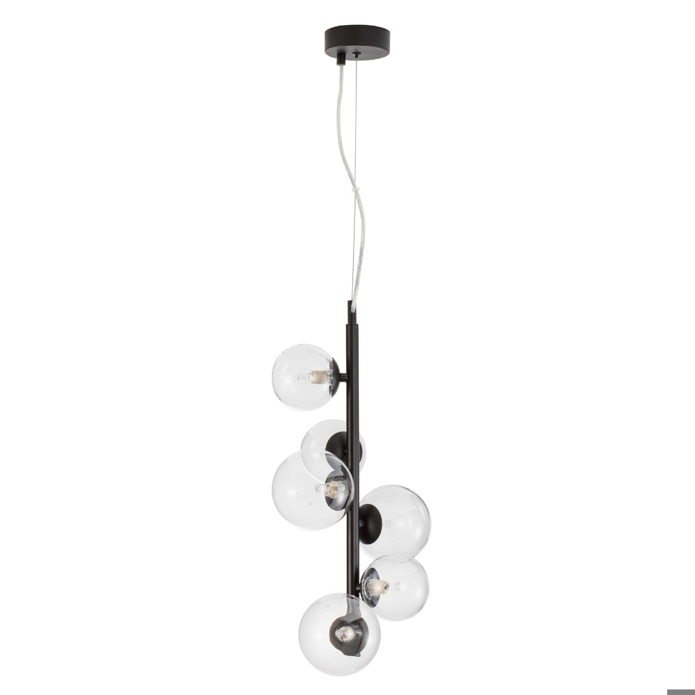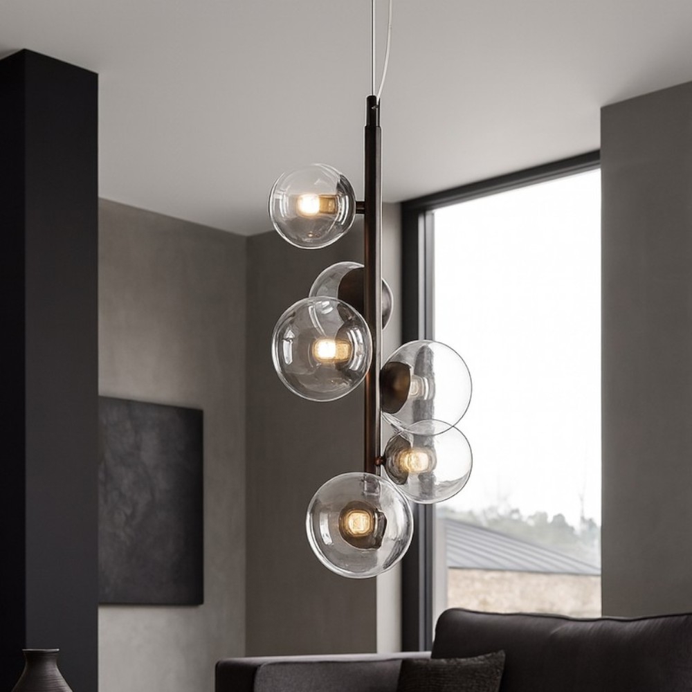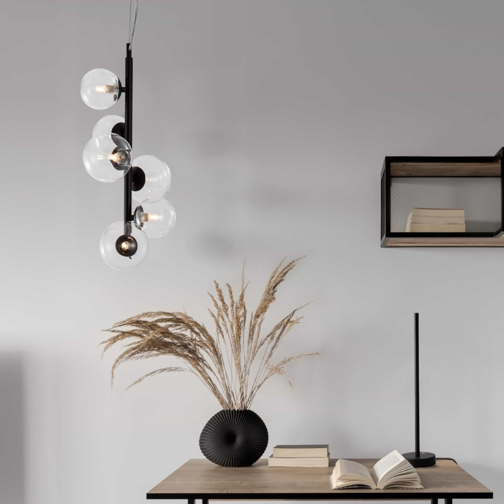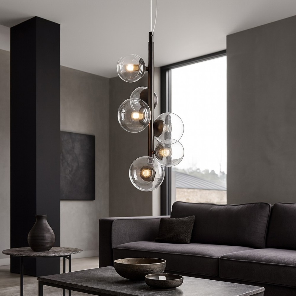 Lampadario per soggiorno moderno nero sfere di vetro trasparente