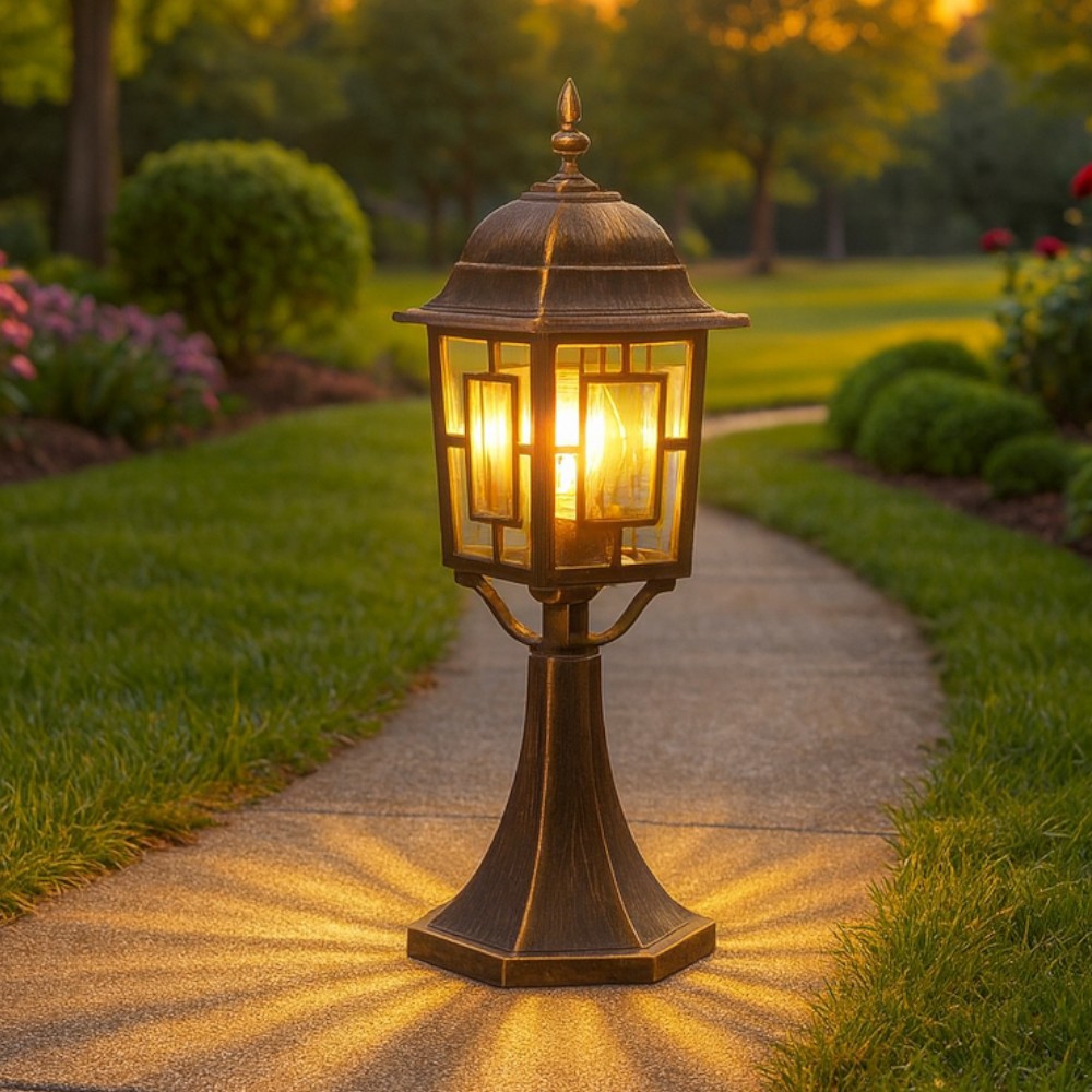 Lampione alto da giardino classico antico 3 luci lanterne ruggine