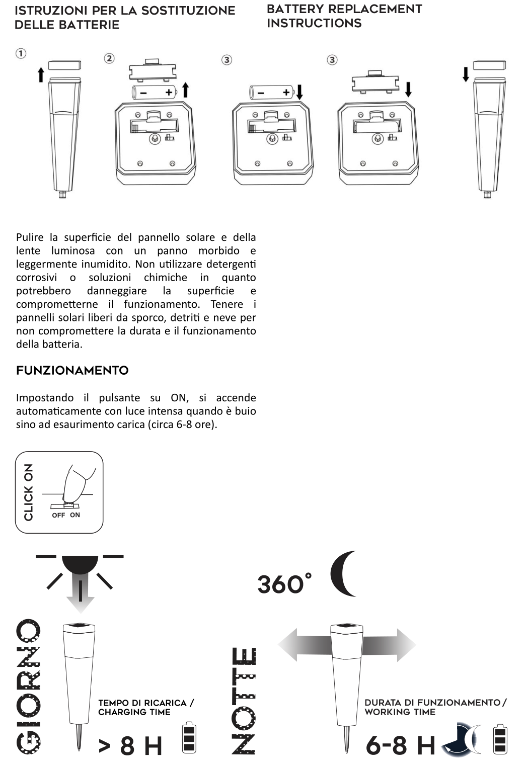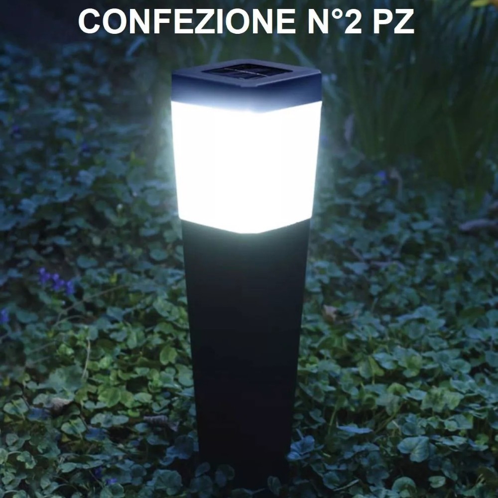 Il set di 2 lampioncini da giardino solari con picchetto è una soluzione pratica e decorativa per creare percorsi luminosi in spazi esterni senza necessità di cablaggi o installazioni complesse. Realizzati in materiale plastico ABS resistente, sono progettati per resistere agli agenti atmosferici grazie alla certificazione IP44, rendendoli adatti a giardini, vialetti e aiuole. Il pannello solare integrato nella parte superiore assorbe la luce solare durante il giorno, ricaricando la batteria sostituibile che alimenta il LED a luce bianca fredda 6000K. Grazie al sensore crepuscolare, la luce si accende automaticamente al calar del sole e rimane attiva per circa 6-8 ore, offrendo una luminosità soffusa ideale per indicare percorsi senza abbagliare. Facili da installare, basta inserirli direttamente nel terreno con il picchetto incluso, senza bisogno di un elettricista. Con il set di 2 lampioncini da giardino solari con picchetto, avrai un’illuminazione elegante, ecologica e funzionale per i tuoi spazi esterni.