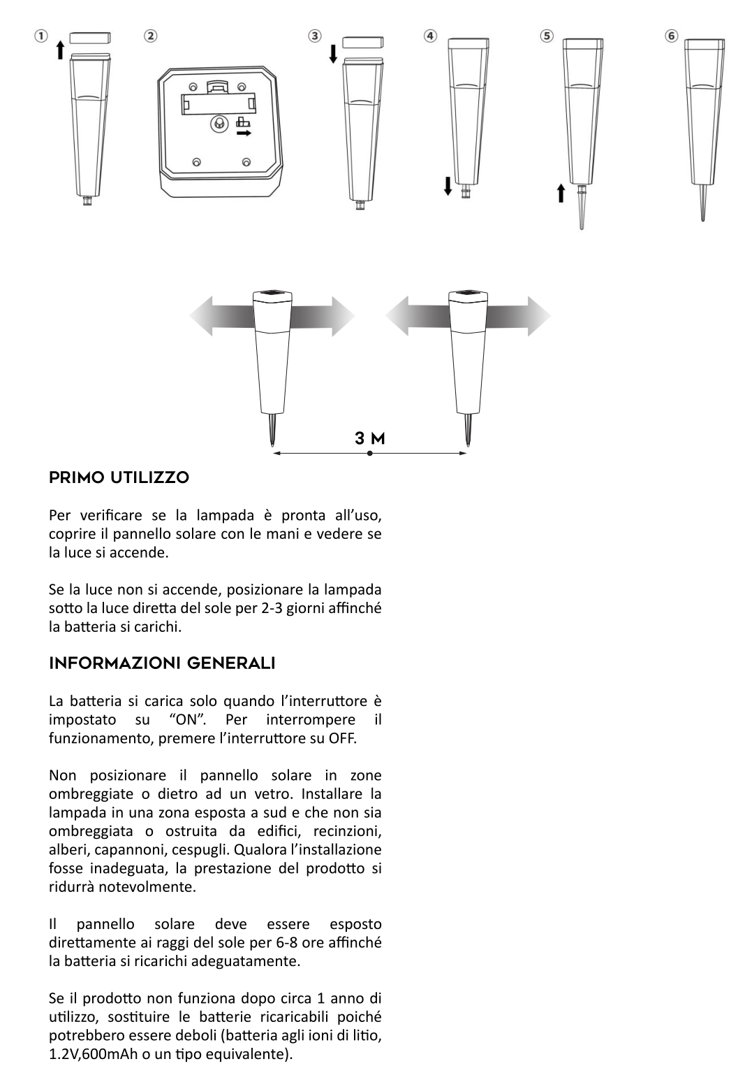 Ho acquistato 4 lampioncini per il mio giardino. La luce non è molto forte ma lo sapevo vista la chiara descrizione. Devo dire che l effetto in giardino è molto bello e la luce per il momento anche con poche ore di ricarica mantiene dall' imbrunire sino alle 4/5 del mattino. Più che soddisfatta tanto è che ne sto ordinando un altra confezione da due.