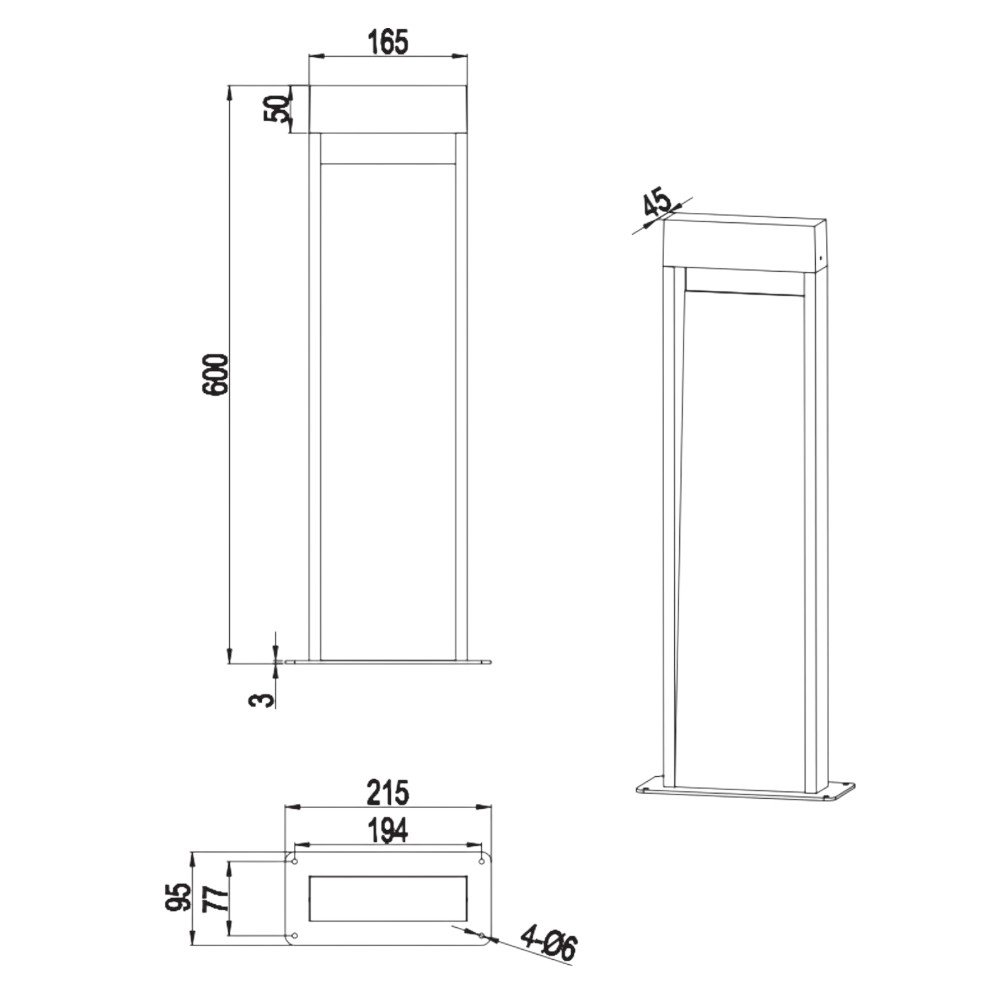 Lampioncino da giardino moderno design squadrato grafite led 4000k