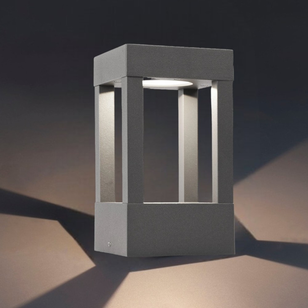 Lampione da esterno moderno led 10w 3000k ip54 grigio antracite quadrato