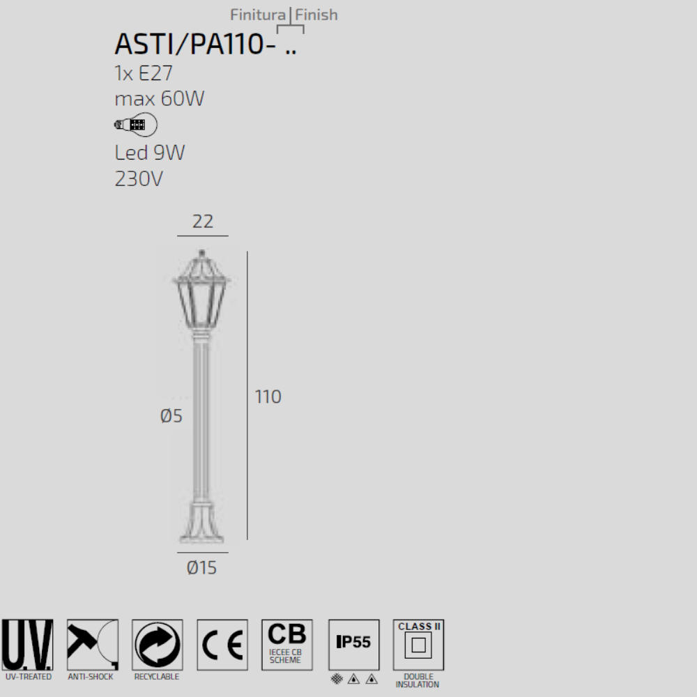 Agos pt h80 4000k lampione da giardino antracite ip54 led 4000k