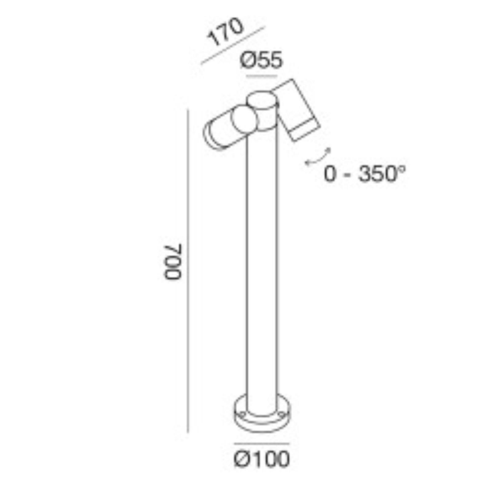 Ideal lux hub pt h110 lampione paletto da giardino orientabile