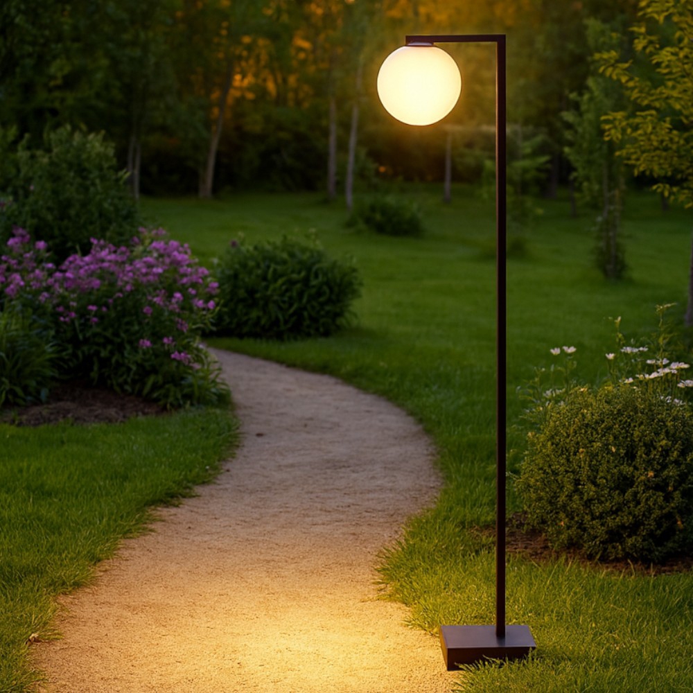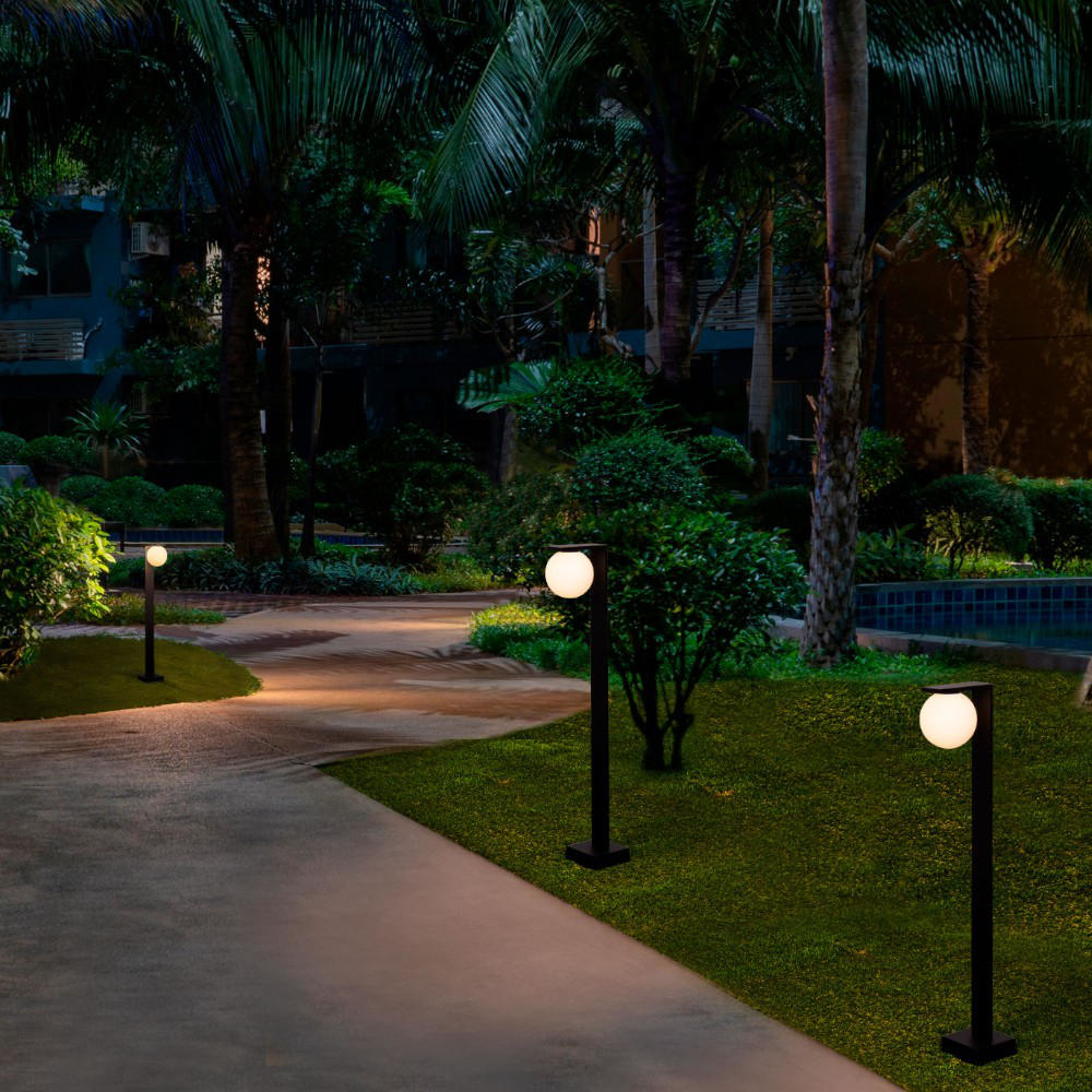 Lampione nero per esterni sfera vetro bianco moderno led 8w 3000k
