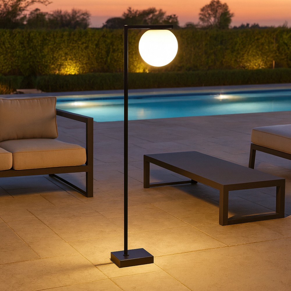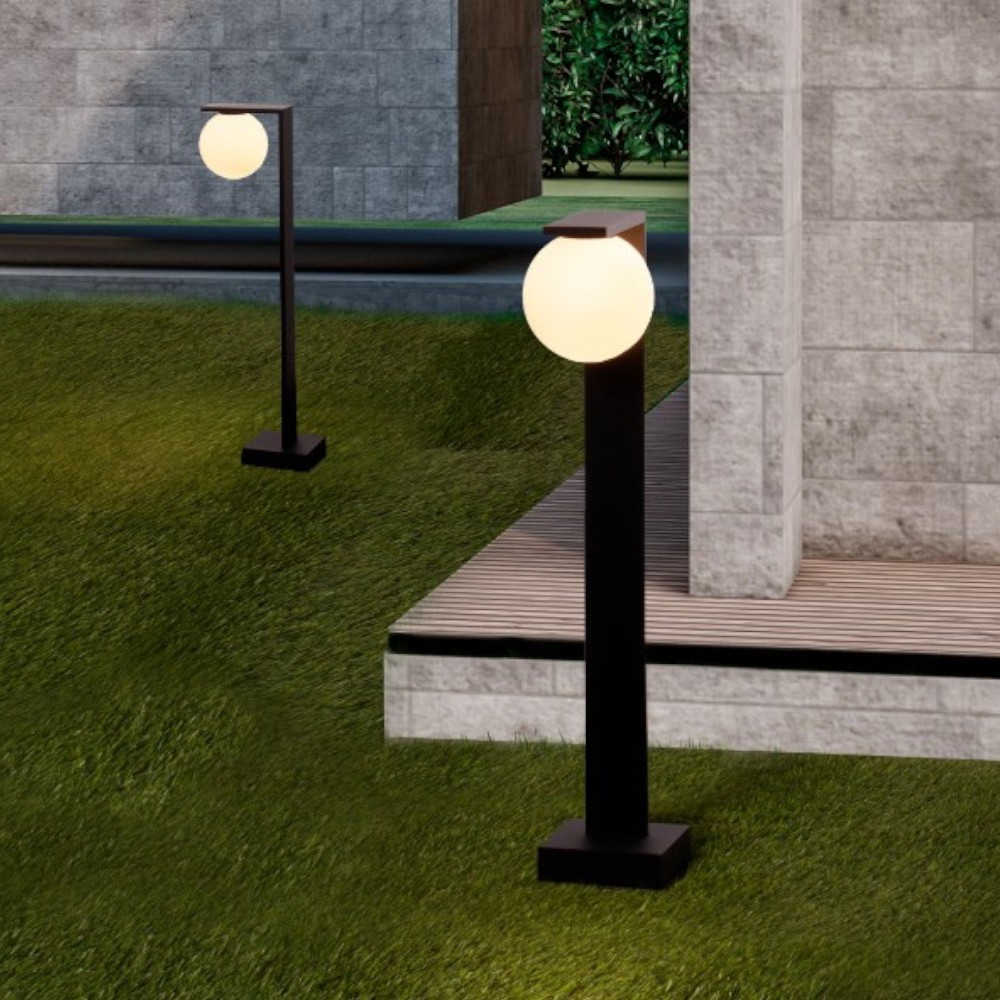 Lampione moderno da giardino nero vetro bianco led 8w 3000k