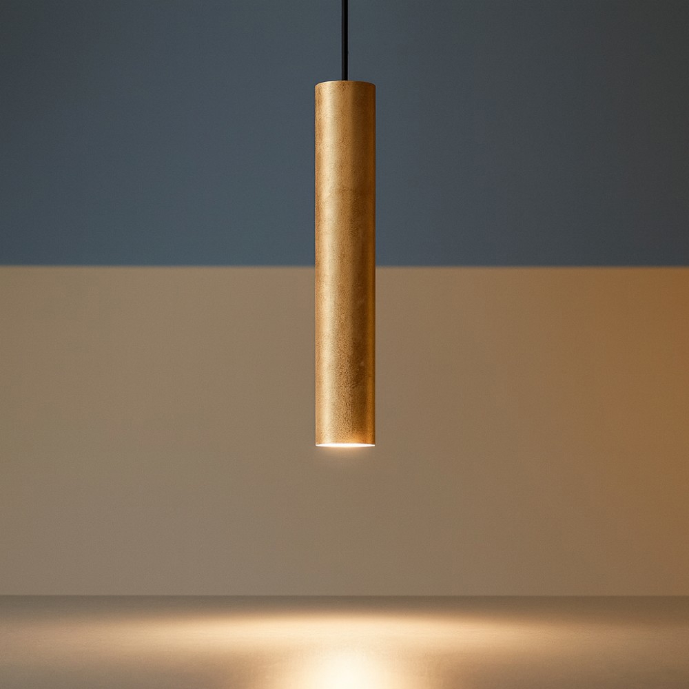 Ideal lux look sp1 d06 lampada sospensione cilindro foglia argento