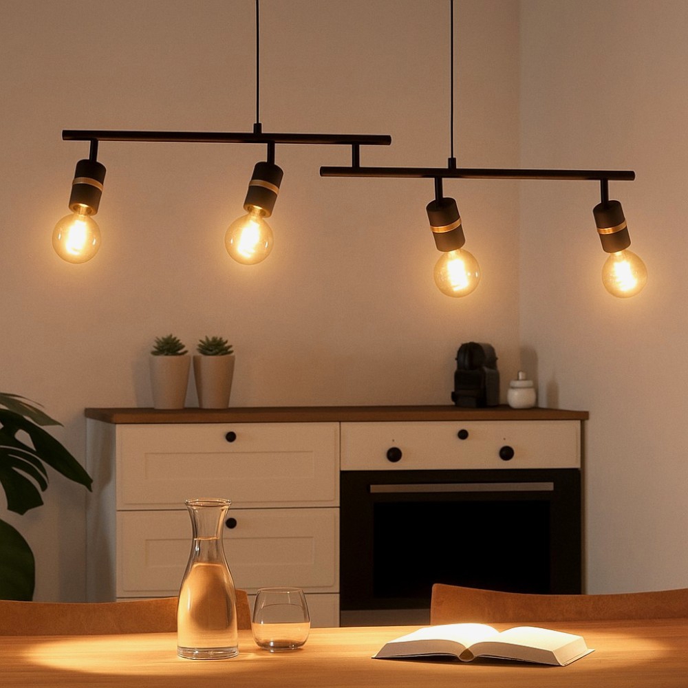 Lurone eglo plafoniera da cucina nera orientabile 4 luci
