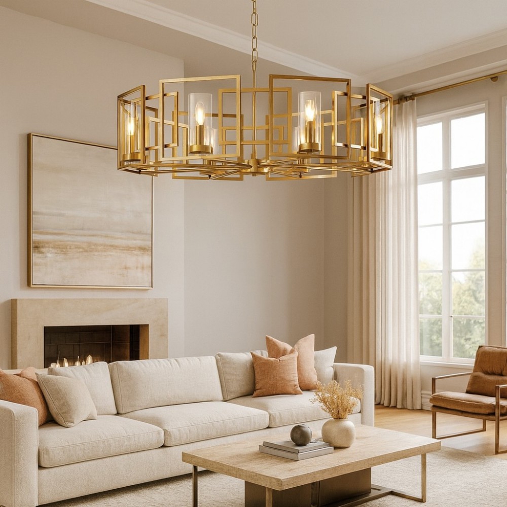 Lampadari moderni per soggiorno cerchi oro led 140w 3000k dimmerabile