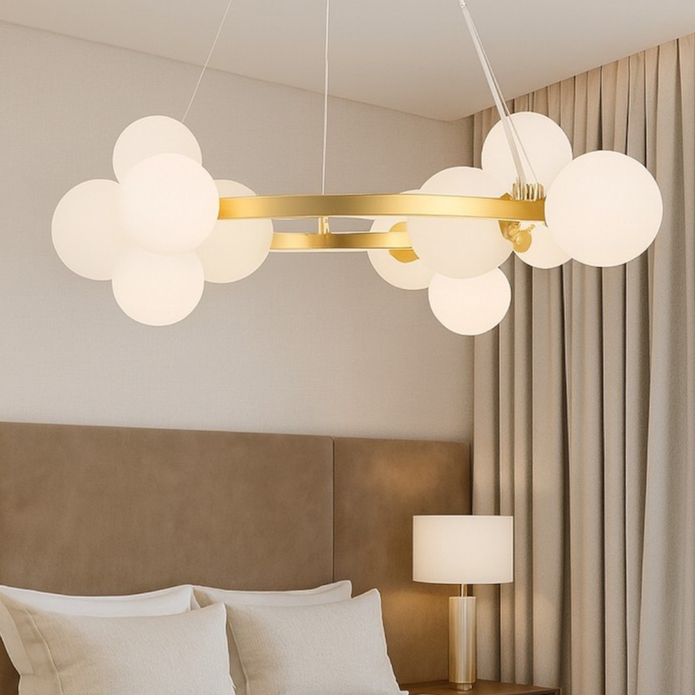 Lampadario per camera da letto contemporanea beige 7 bracci e14