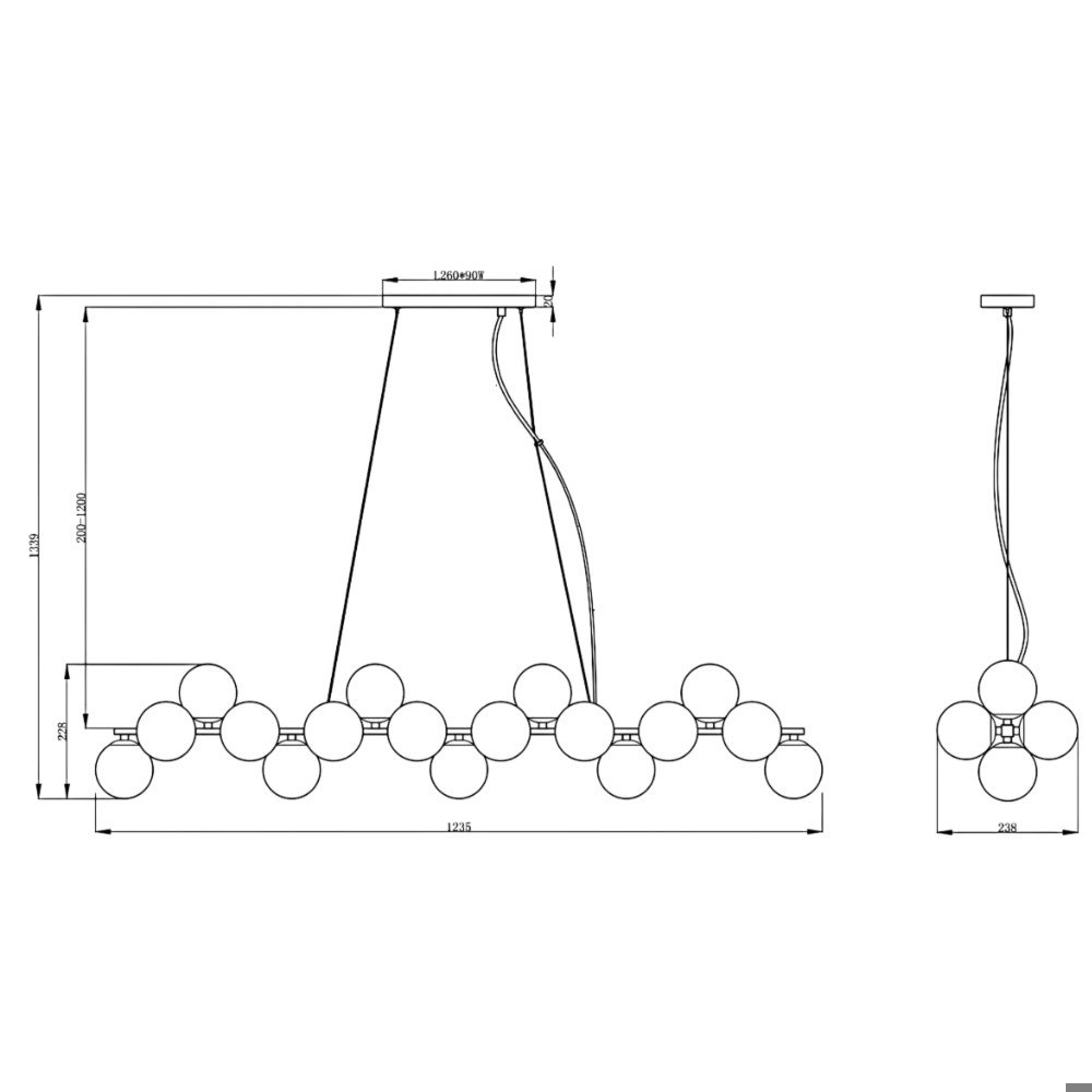 Lampadario dorato per tavolo da cucina sfere vetro bianco