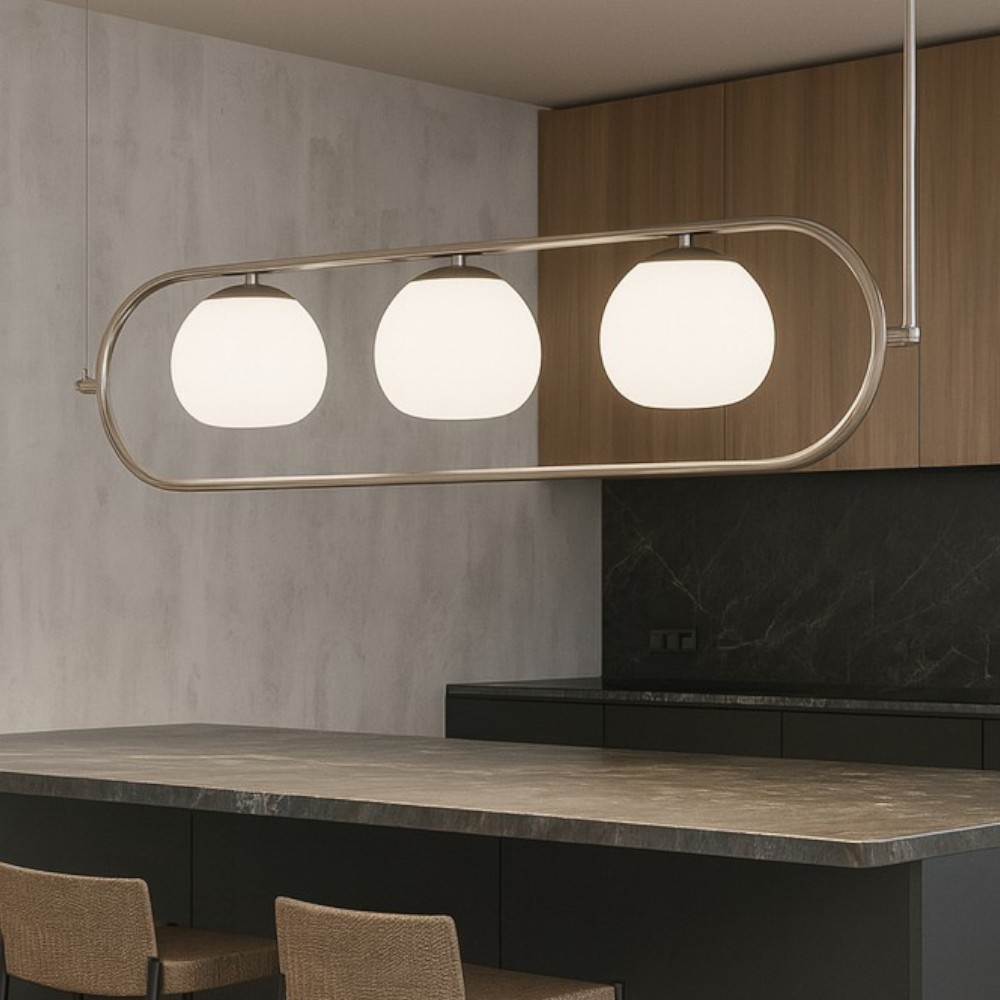 Lampadario erich design moderno nichel sfere vetro bianco per soggiorno maytoni
