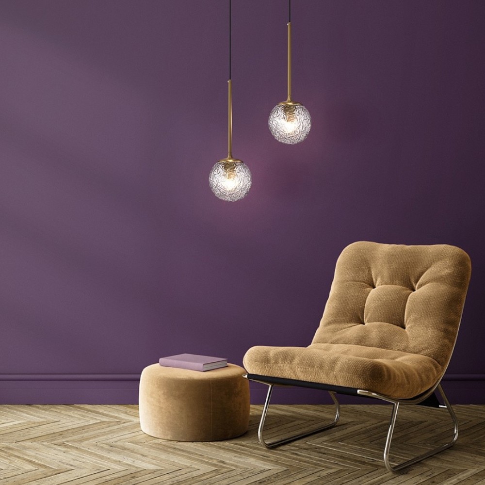 Lampada a sospensione per comodino camera da letto vetro caffe' led 3000k