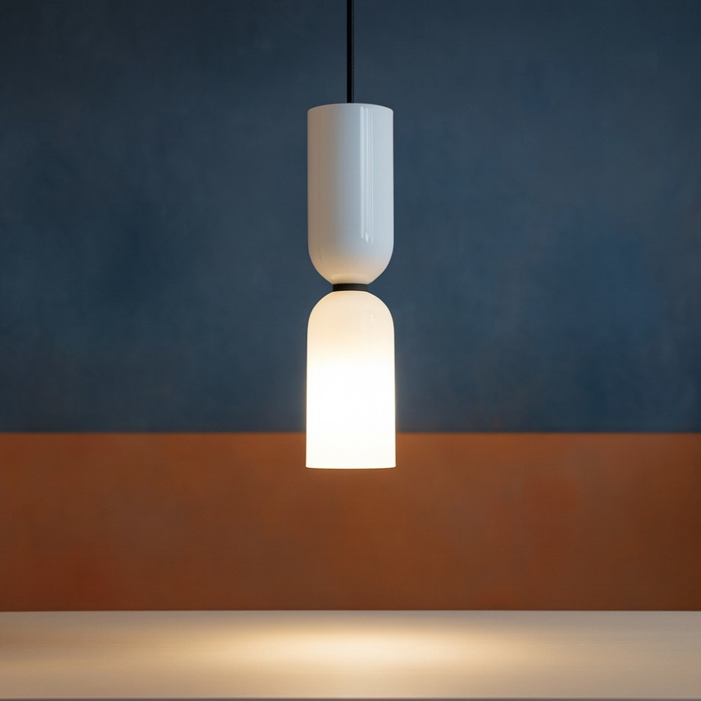 Lampada a sospensione doppio vetro ambra trasparente per isola cucina