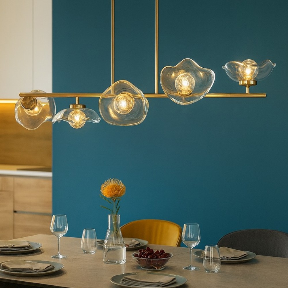Lampadario dorato per tavolo da cucina sfere vetro bianco