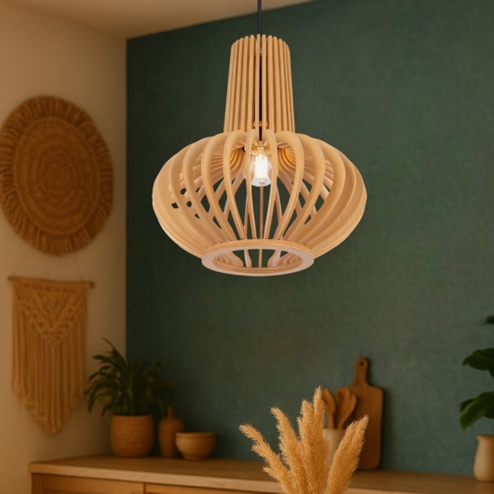 Maytoni roots lampada a sospensione per cucina paralume in legno