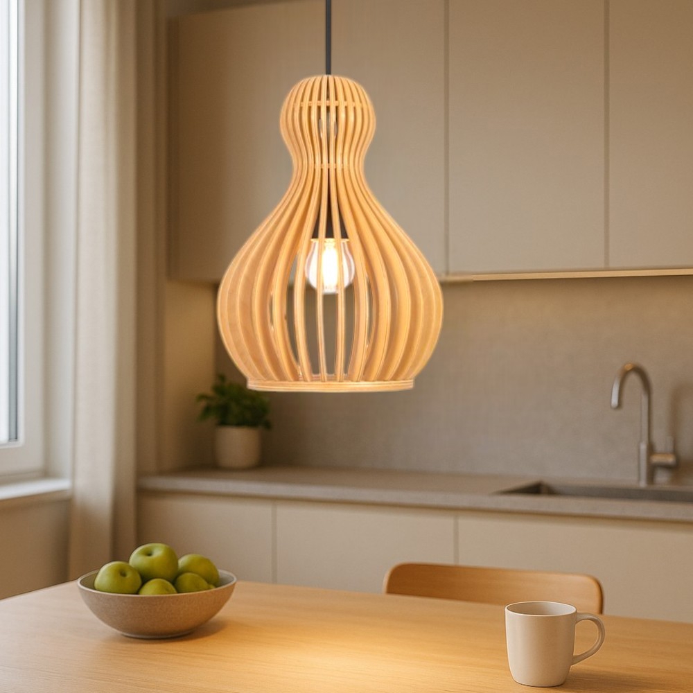 Maytoni roots lampada a sospensione con forma a goccia in legno