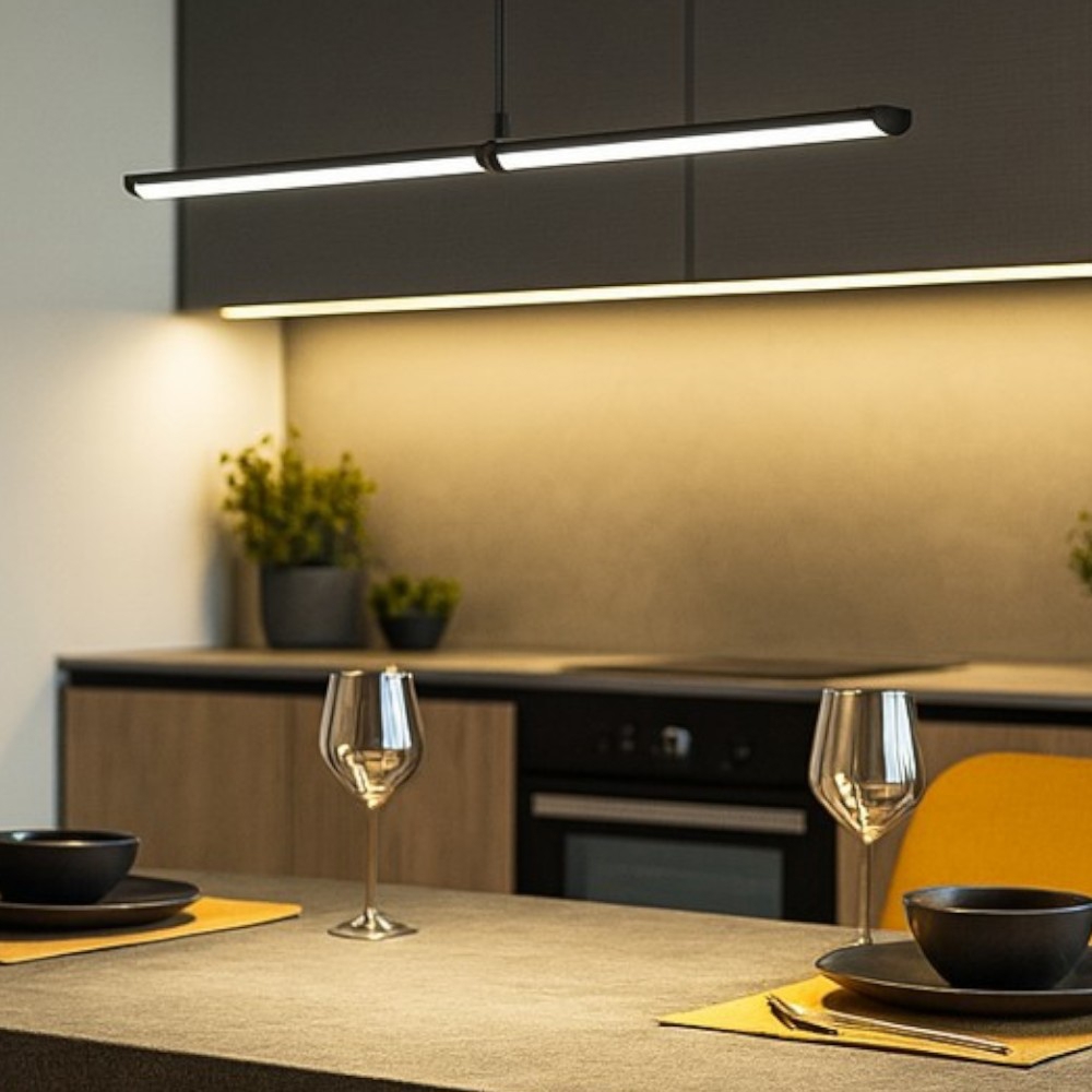 Lampadario saliscendi nero per cucina moderna led 12w 3000k