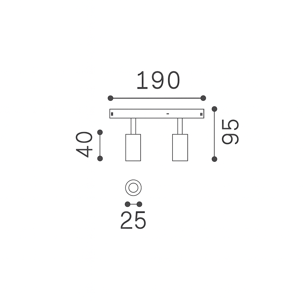 - LARGHEZZA: 2,5 cm (faretto), 19 cm (barra)