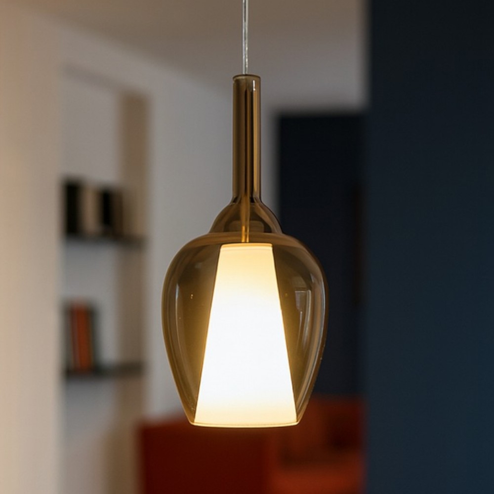 Lampada a sospensione da cucina con paralume in vetro ambrato led 3000k