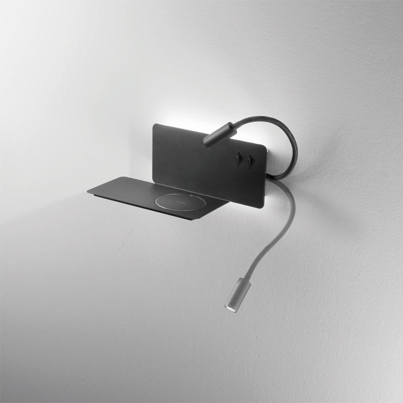 Applique per comodino camera da letto led nera sx ondaluce ap flat presa usb