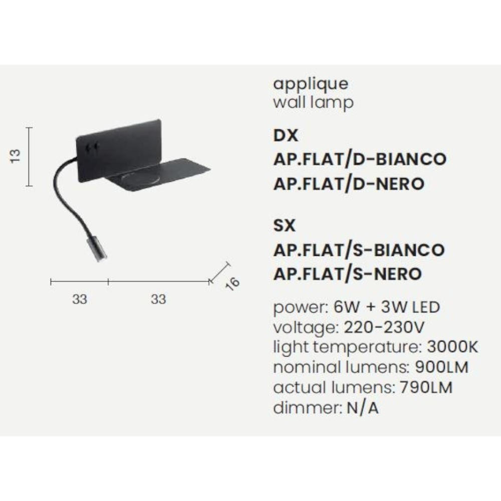 Ondaluce ap flat applique per camera da letto bianca multifunzione sinistra led