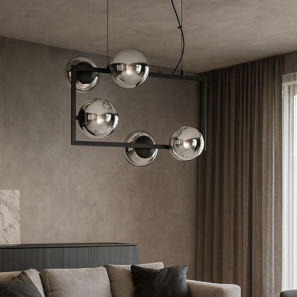 Lampadario moderno per salotto oro 6 bocce trasparenti