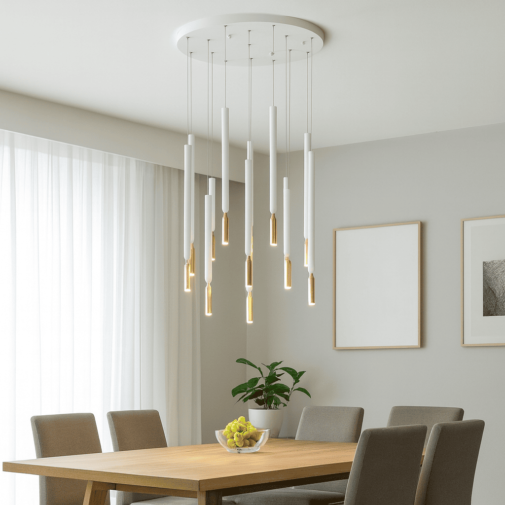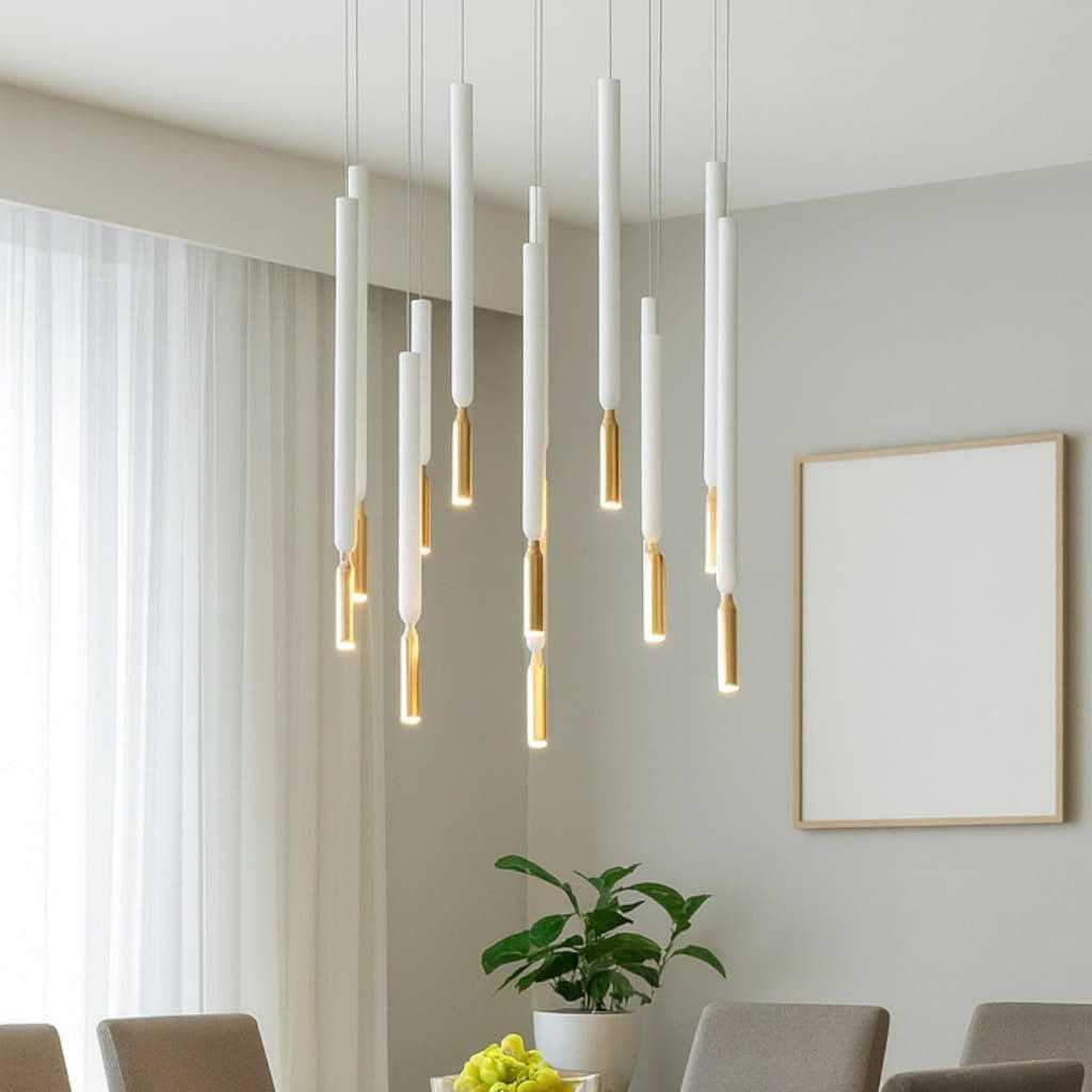 Lampadario moderno 12 luci led 3000k ondaluce so tubic oro dimmerabile