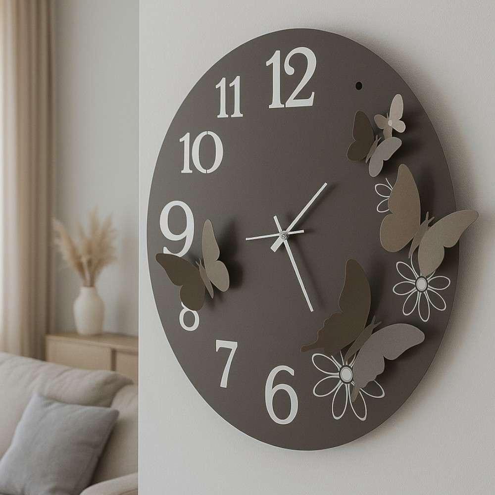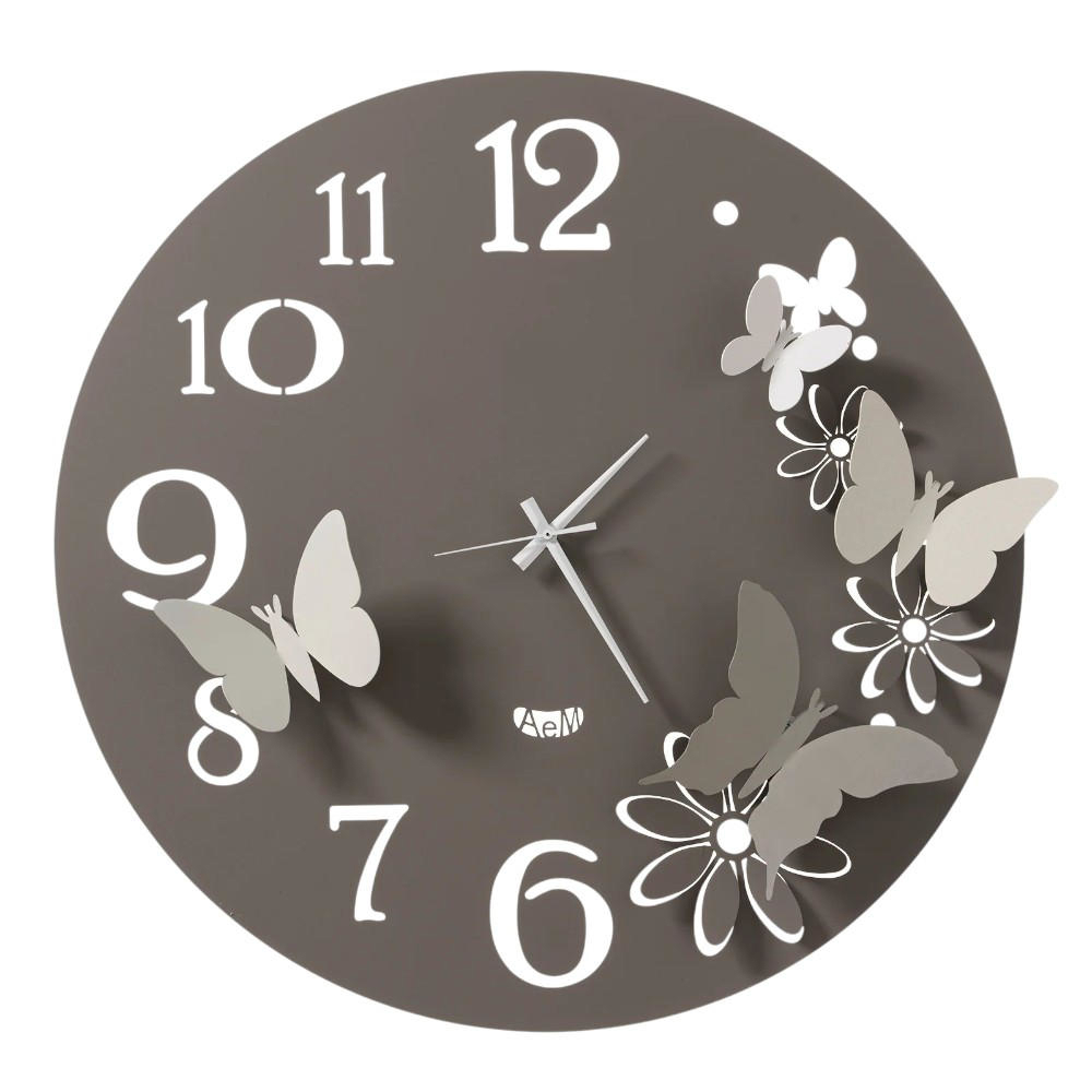 Orologio rotondo da muro moderno farfalle sabbia e bronzo