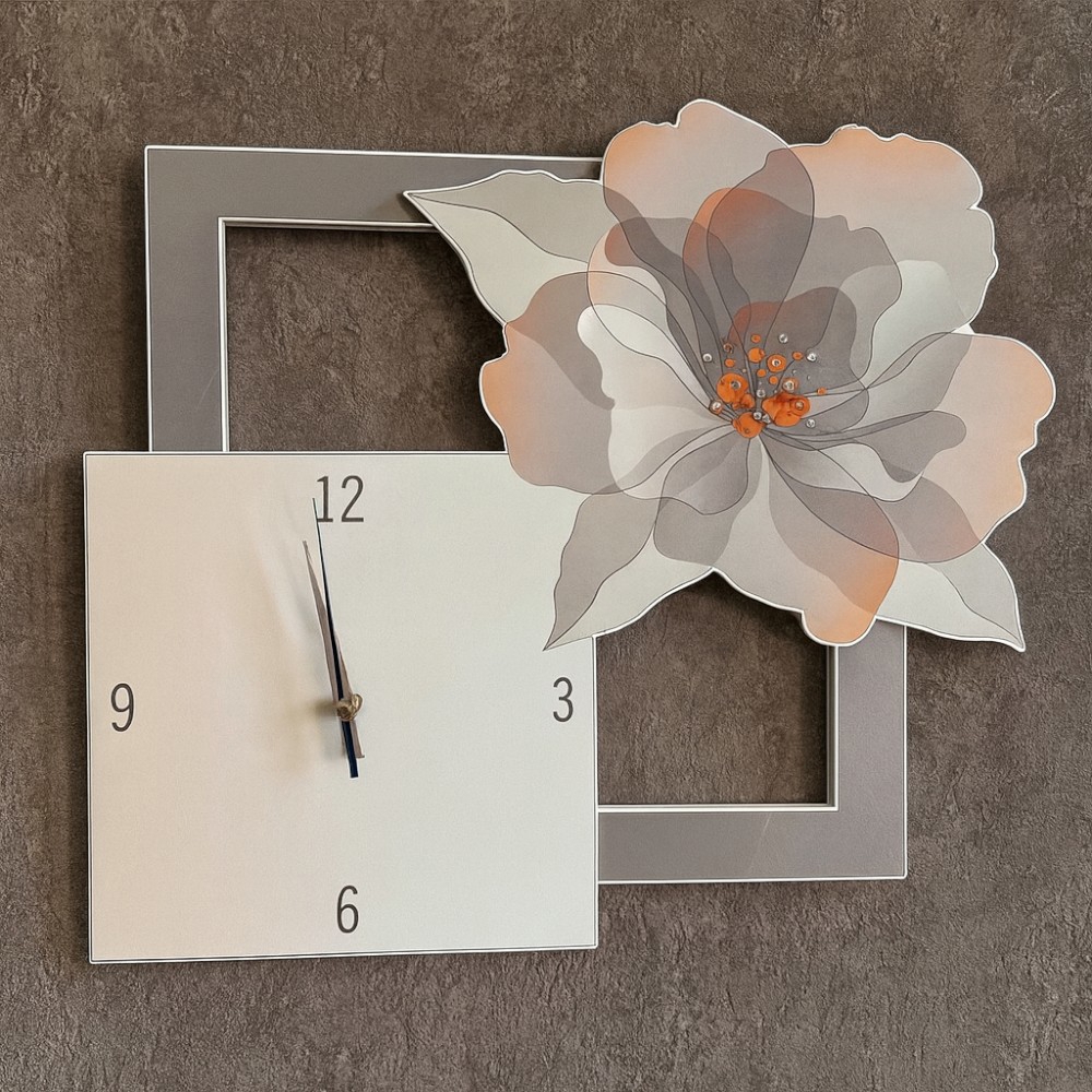 Orologio da parete fiore moderno cipria con strass bongelli preziosi