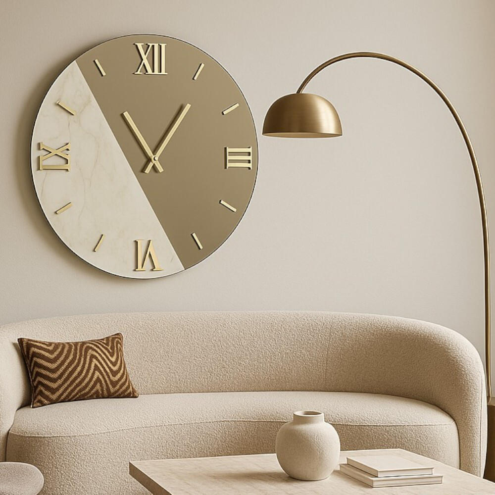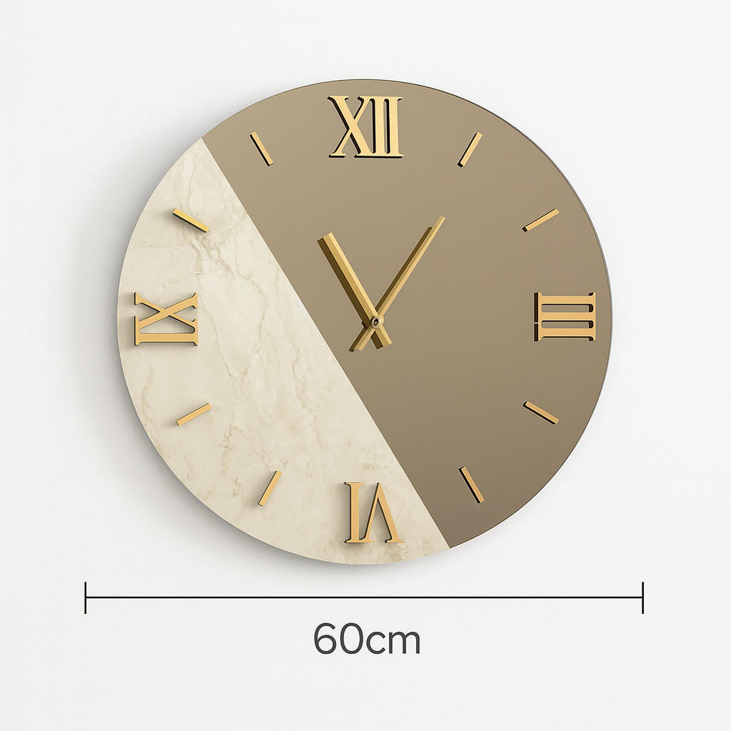 Orologio da parete 60cm kerlite laminato effetto marmo specchio fume