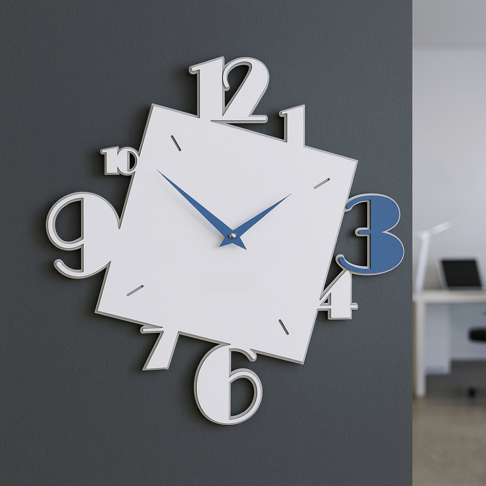 Orologio squadrato da parete design numeri legno noce e sabbia