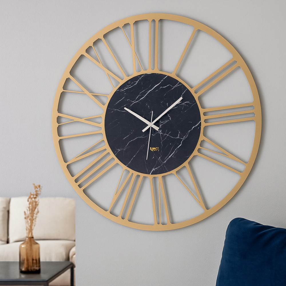 Orologio da parete moderno rotondo nero effetto marmo 90cm