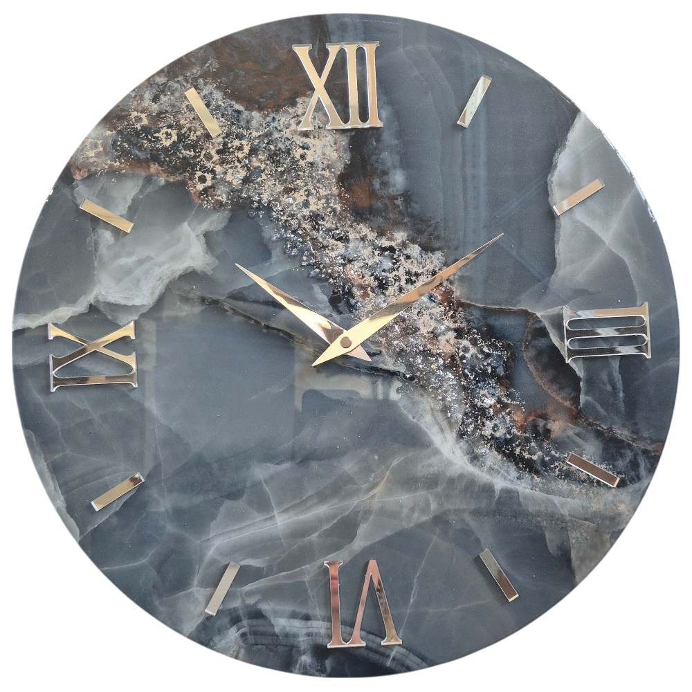 Orologio da parete 60cm nero effetto marmo tondo moderno