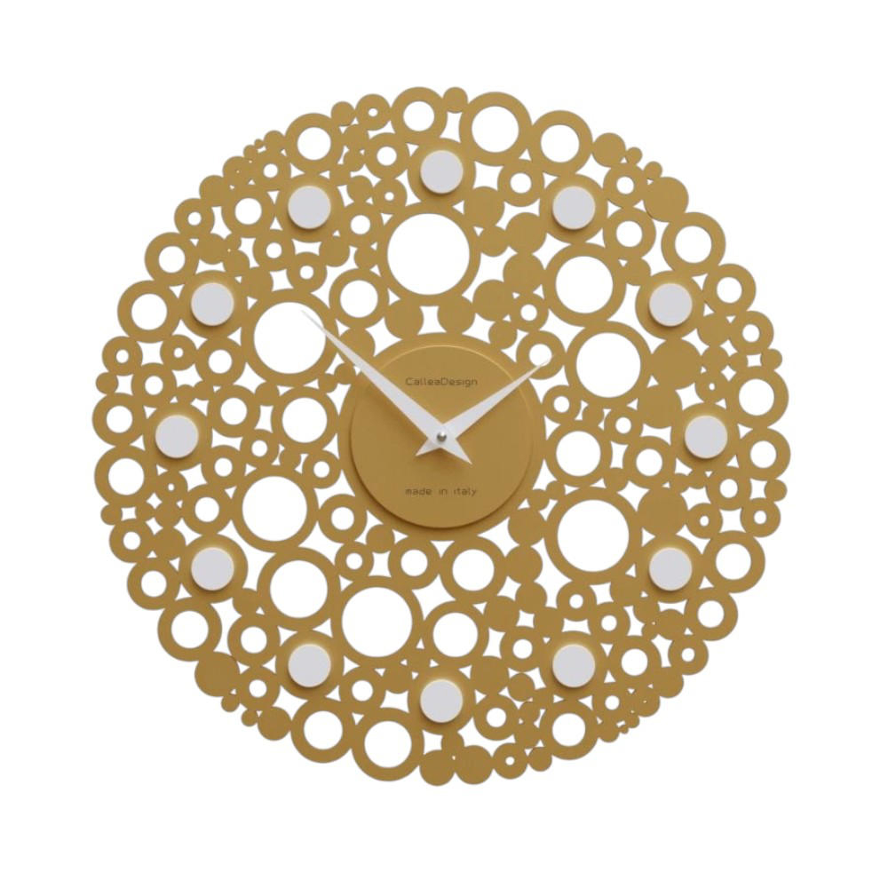 Questo orologio moderno, con diametro di 40 cm e struttura in legno MDF, conquista per il suo design traforato a cerchi che dona leggerezza e movimento visivo. La finitura oro satinata, ottenuta con vernici a base d’acqua, lo rende un pezzo elegante per gli interni. Le lancette in metallo, dal tratto essenziale, garantiscono leggibilità e armonia. Grazie al meccanismo al quarzo silenzioso, rappresenta una scelta raffinata per chi cerca orologi da parete particolari in grado di decorare con classe e funzionalità ogni ambiente della casa.