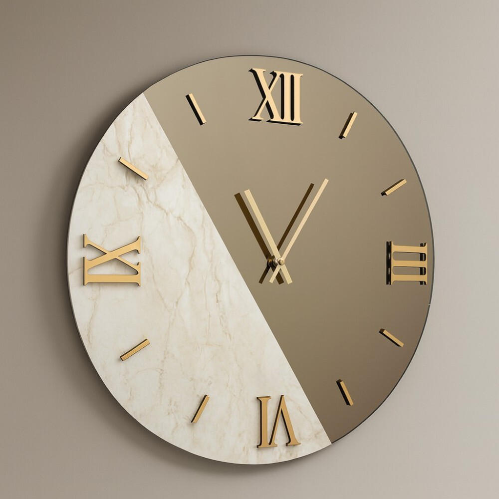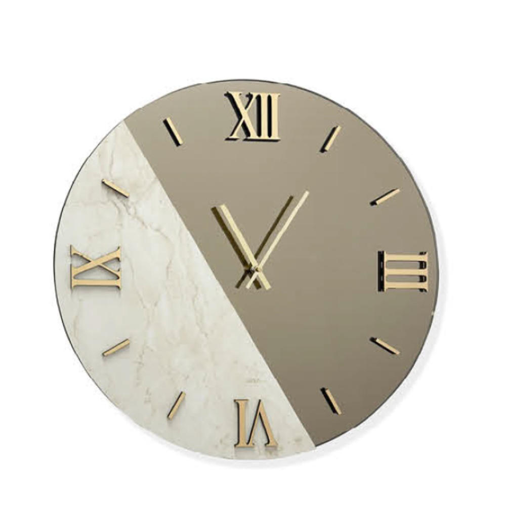 Orologio da muro moderno design rotondo specchio e marmo laminato 60cm