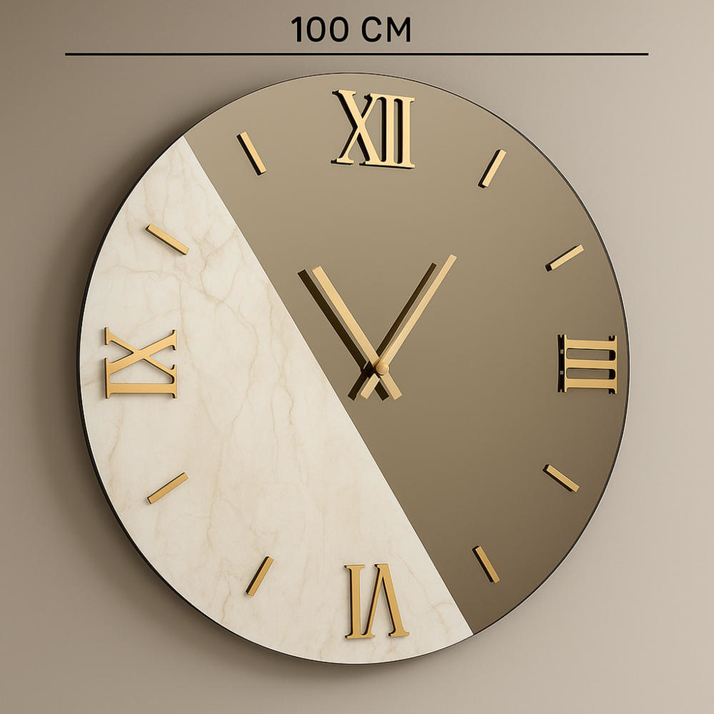 Grande orologio da muro 100cm rotondo specchio fume e marmo laminato