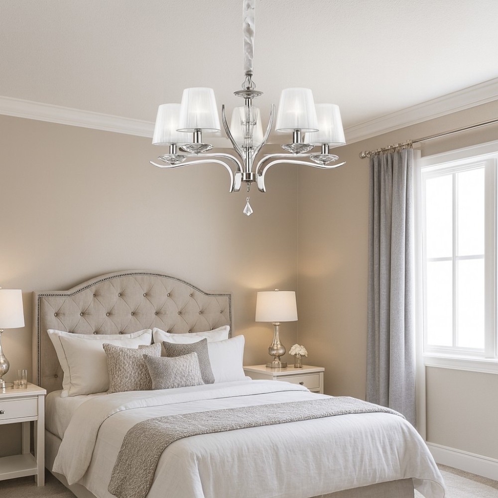 Pegaso sp8 lampadario da salone 8 bracci con paralumi in organza ideal lux